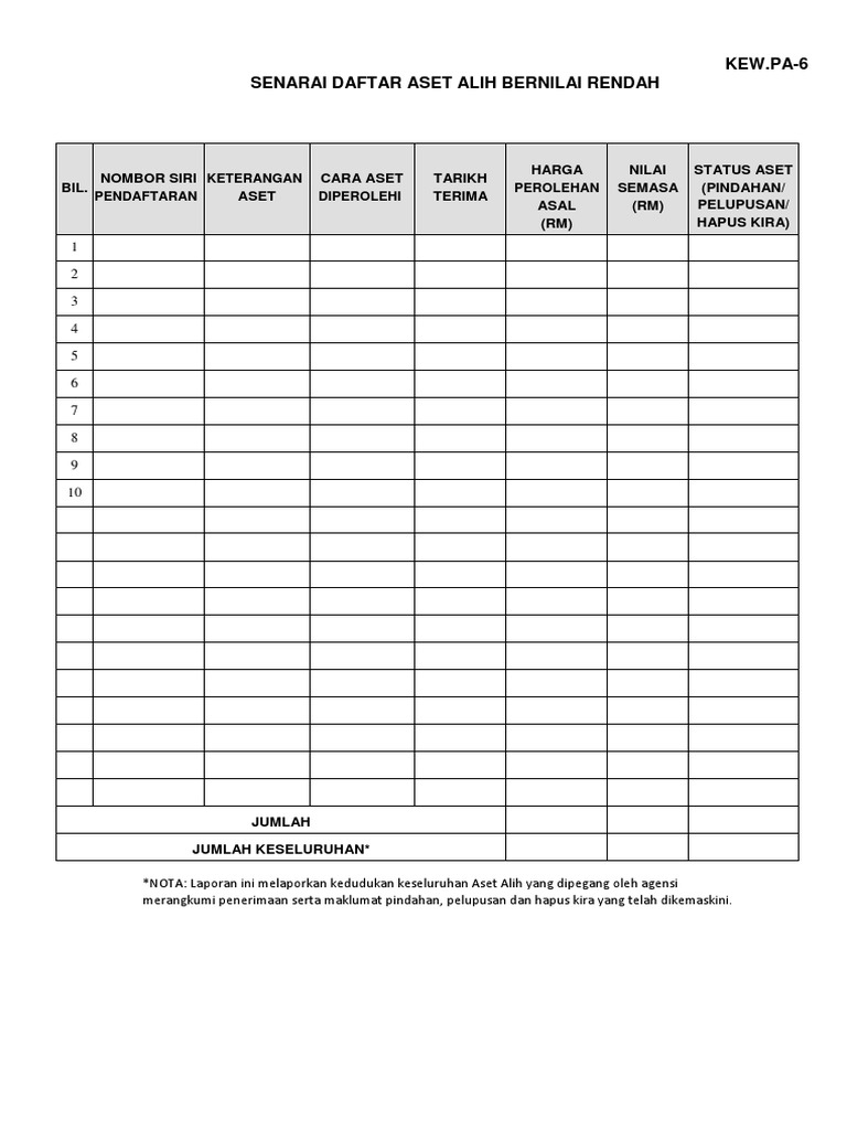 Borang Kew Pa 6 : Borang Aset Kew Pa 1 20 1pp Xls - Kos penyelenggaraan terdahulu (jika ada) :. Borang kew pa december 2019 64. Kod lokasi stok baki stok bagi 6 bulan sebelum tamat tempoh luput. Undangan format resmi gerakan pemuda ansor april 2020 22. 3 3 6 borang kew pa 2 yang telah ditandatangani oleh pegawai penerima hendaklah dihantar dengan serta merta kepada agen penghantaran syarikat pembekal atau pihak berkaitan. Laporan kedudukan semasa aset alih: